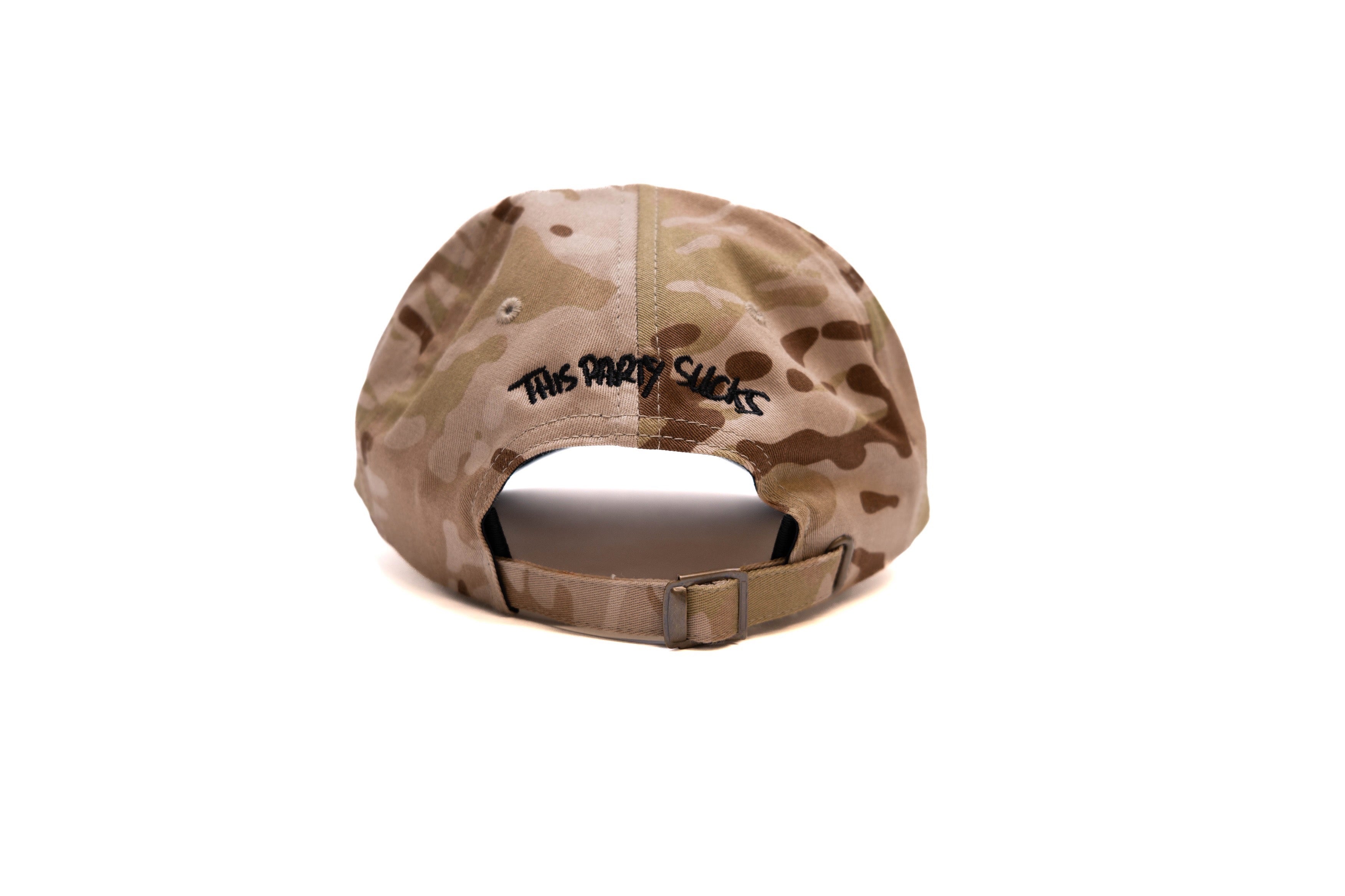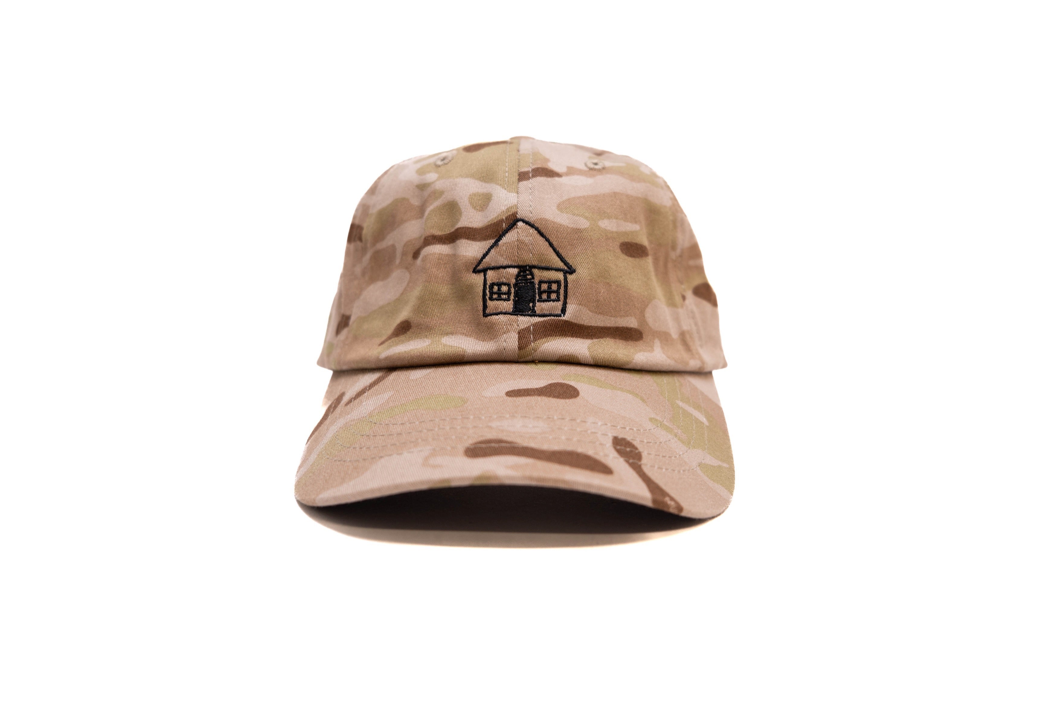 Black HPD OG House logo embroidered on a Multicam Arid Yupoong dad hat.